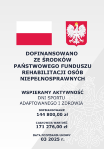 Cel i opis: Likwidowanie barier społecznych, psychologicznych, przełamywanie stereotypów dotyczących Osób z Niepełnosprawnościami oraz ich integrowanie poprzez z organizowanie imprezy „Dni Sportu Adaptowanego i Zdrowia” z wykorzystaniem sportu i działań informacyjno-edukacyjnych.